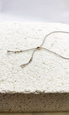 Our Silk Bracelet is made from 100% Fine Silk thread and 9CT Yellow Gold 2.5mm Beads and Fastenings. This piece looks beautiful on its own or layered with our Naked Chain or Twiglet Bracelets.